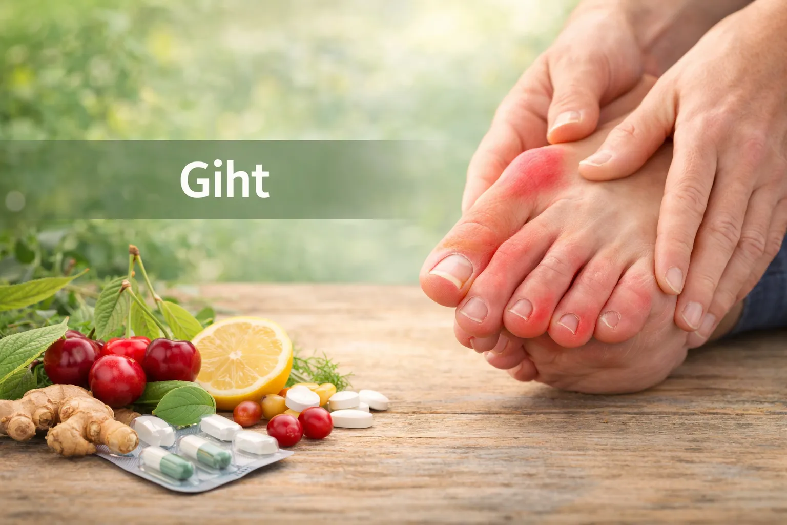 Javlja se kao oštra bol u nožnom palcu, skočnom zglobu, koljenima, laktovima i općenito pregibima u tijelu. Bolest se najčešće javlja u proljeće i jesen.Kristali mokraćne kiseline nakupljaju se u zg...