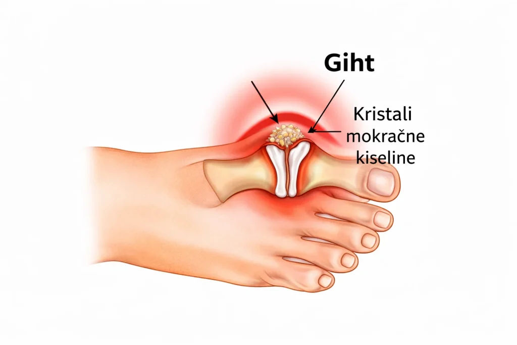 giht kristali mokracne kiseline upala zgloba palca